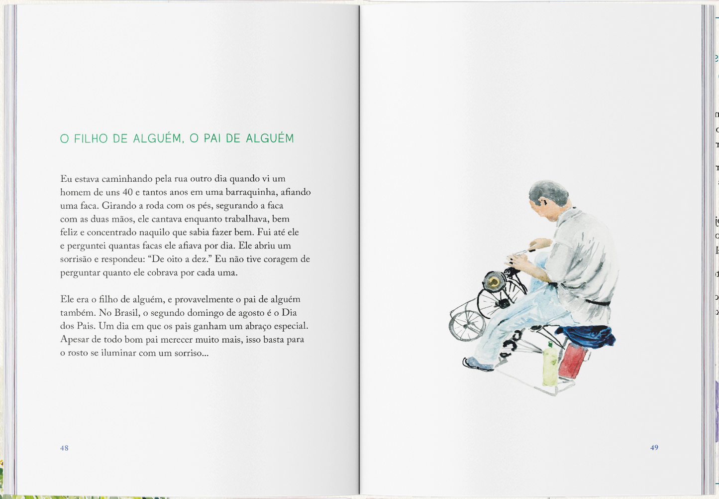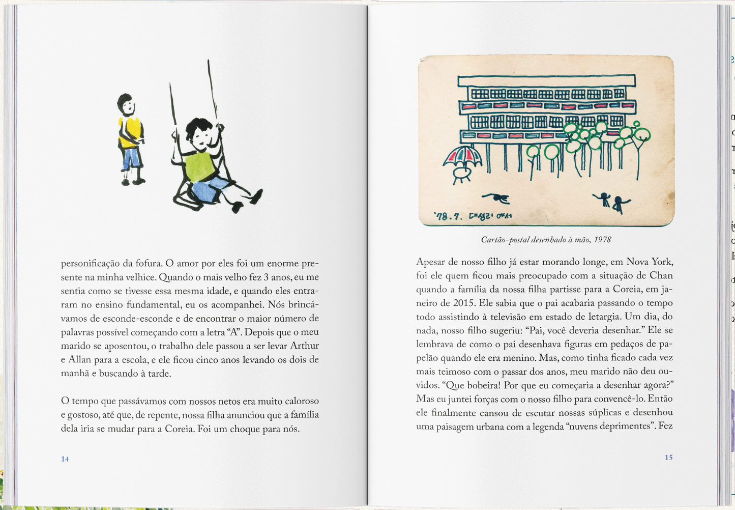 Saudoso e entristecido, Chan começou a retratar situações do dia a dia em aquarelas delicadas, acompanhadas de textos escritos por Marina.