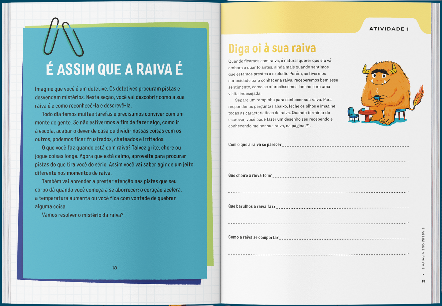 DESCUBRA O QUE FAZ VOCÊ SENTIR RAIVA em casa, na escola, no convívio com os amigos e nas mais diversas situações. Faça dezenas de atividades para resolver o mistério da raiva!
