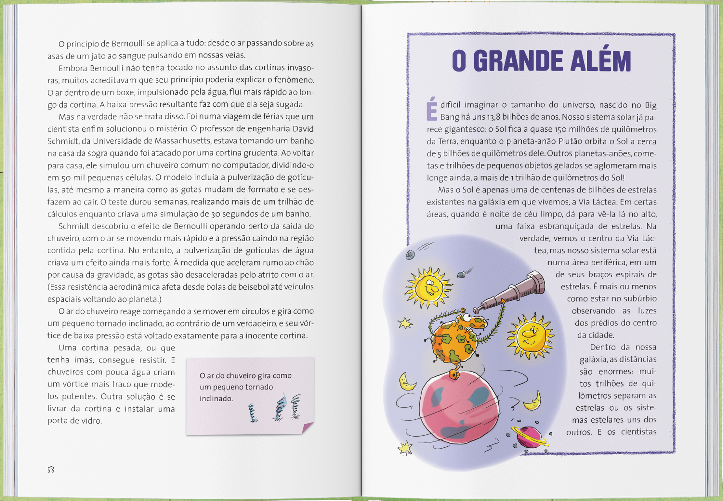 Neste novo livro, eles contam com a ajuda de Kathy Wollard, renomada jornalista científica, para reunir ótimos questionamentos sobre a vida e o universo, feitos por crianças do mundo inteiro – da Austrália e do Brasil, da Indonésia e do Canadá, de Omã e do Reino Unido.