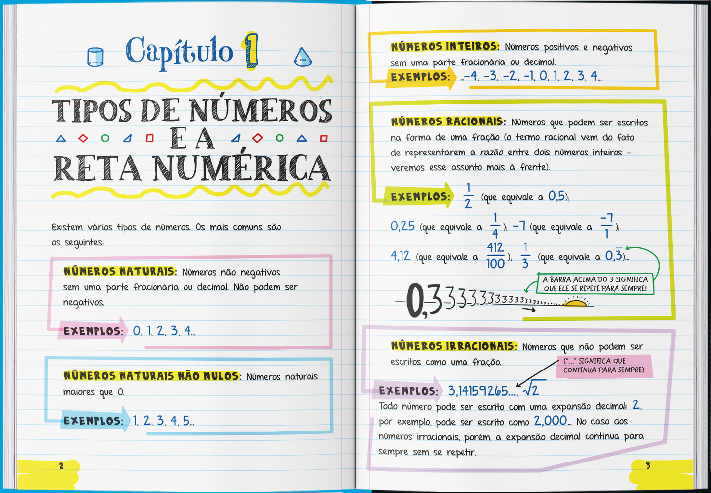 Anotações incríveis e divertidas para você aprender sobre o intrigante universo dos números e das formas geométricas.