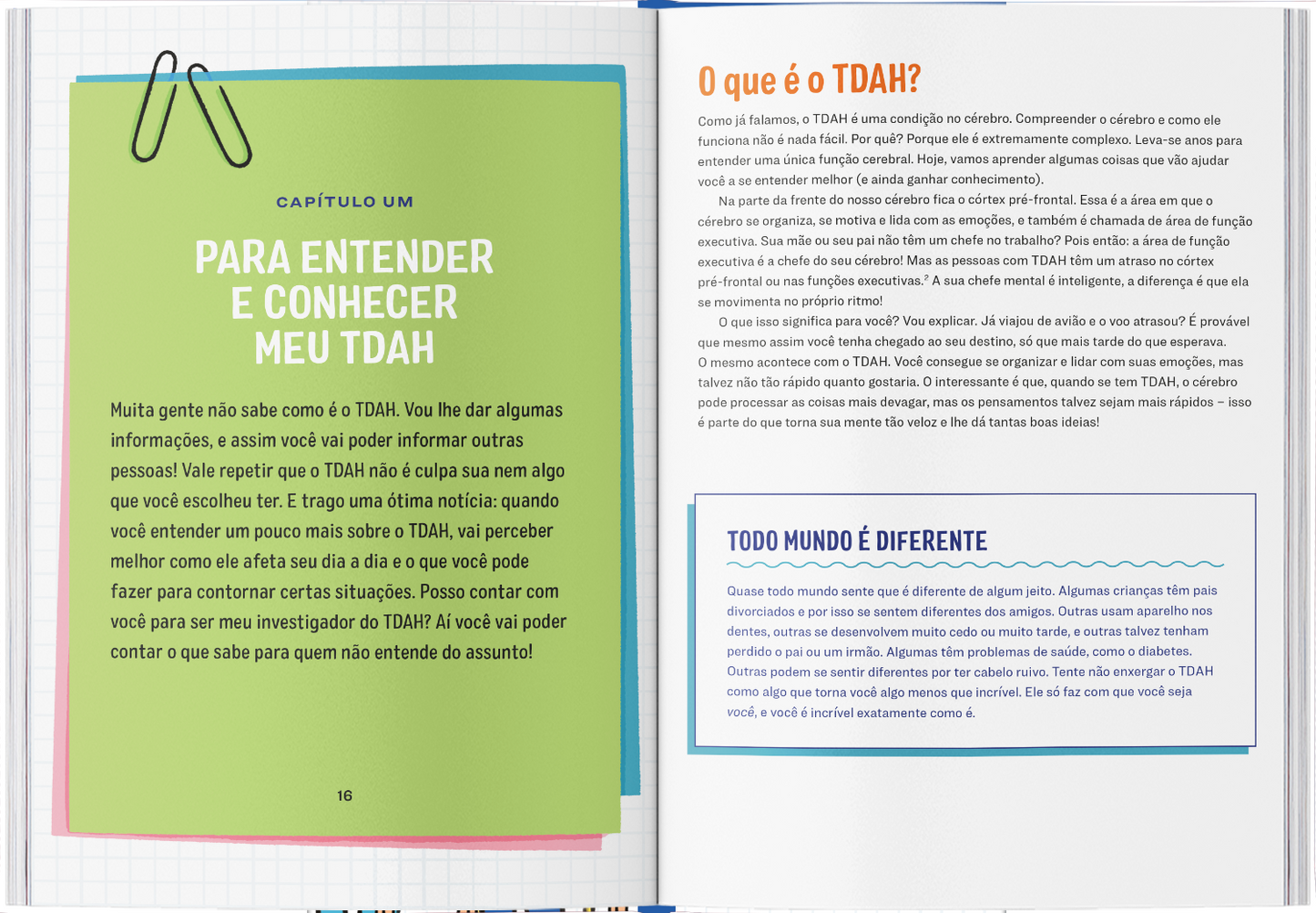 Este livro traz atividades divertidas que vão ajudar você a conhecer melhor o TDAH e também a si mesmo, além de ferramentas simples que você pode começar a usar desde já para se sentir mais confiante e no controle.