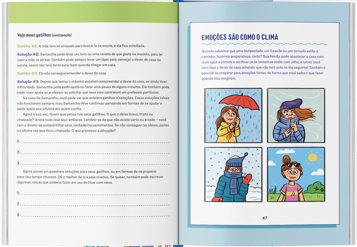 Ao aprender como controlar suas emoções e até se organizar para a escola, você vai adquirir habilidades superúteis para lidar com a raiva, se manter focado, dominar seus impulsos e tomar decisões conscientes.